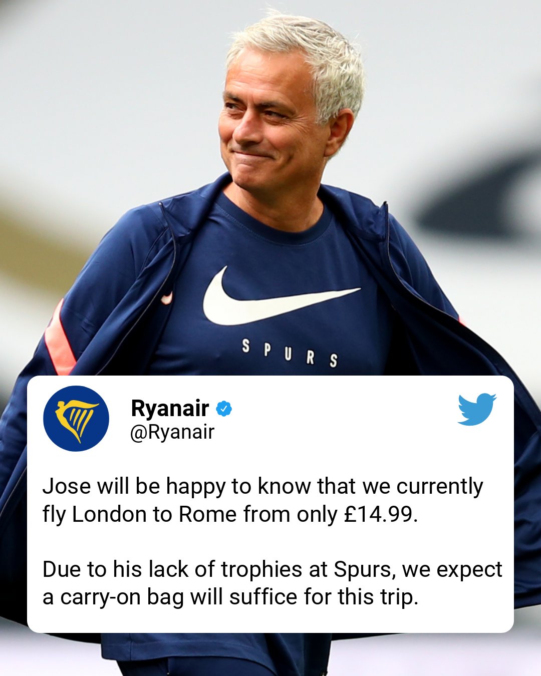 Ryanair On Twitter Jose Will Be Happy To Know That We Currently Fly London To Rome From Only 14 99 Due To His Lack Of Trophies At Spurs We Expect A Carry On Bag